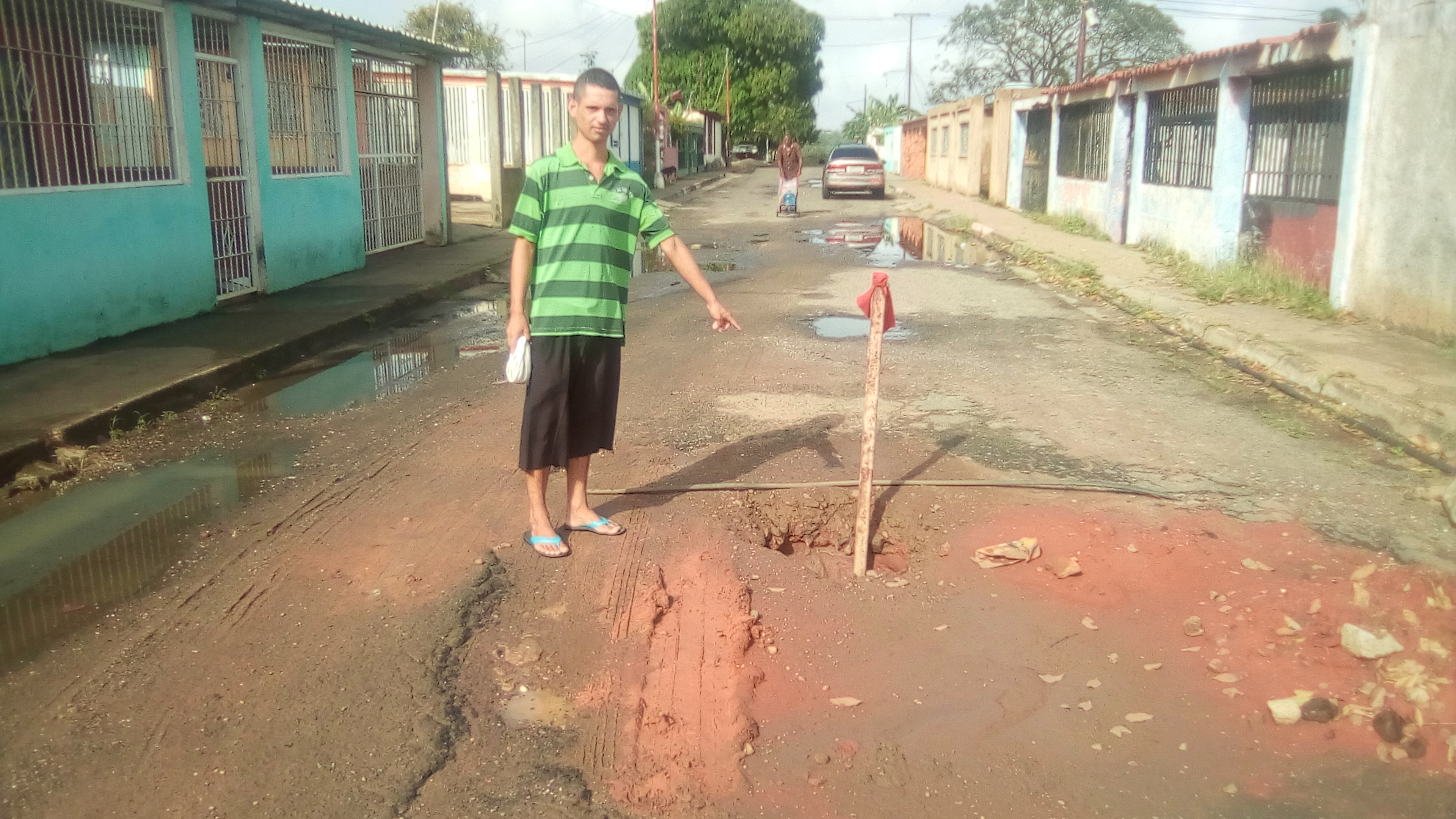 En el sector Cinco, específicamente en la calle 81, se puede ver una tronera en plena calle, la cual los mismos vecinos decidieron ponerle un palo con un trapo de color rojo para que sirva de señal a fin de evitar que algún vehículo caiga en el hoyo.