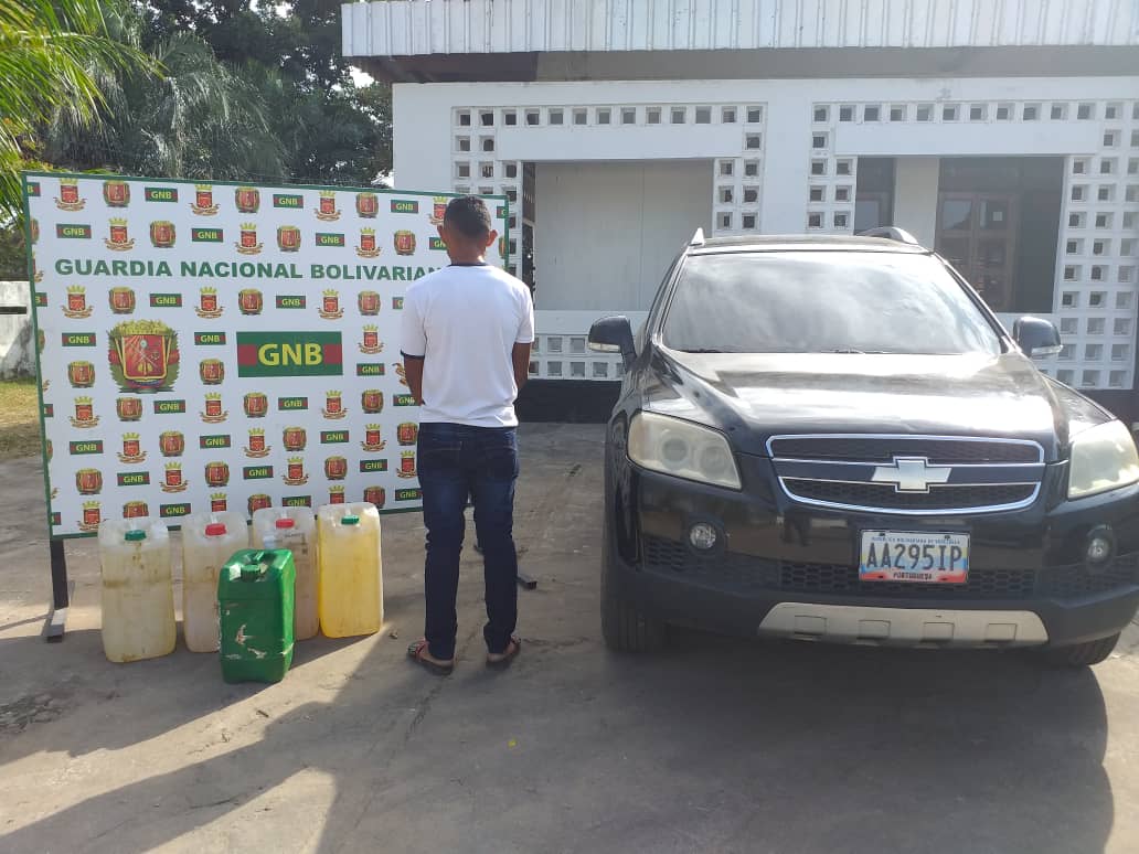 El General Rodríguez Cepeda manifestó que efectivos militares del Destacamento 626 incautaron 350 litros de combustible durante varios procedimientos, resaltando que en el muelle “Paso de La Chalana” fue detenido el ciudadano Yohan José Gómez Gutiérrez, de 30 años de edad, quien transportaba en un vehículo particular la cantidad de 05 recipientes plásticos contentivos de un total de 140 litros de gasolina. Asimismo fue detenido el ciudadano Pablo Alfonso Loreto Loreto de 45 años de edad, quien transportaba en un vehículo particular 02 recipientes plásticos contentivos de 60 litros de gasolina.