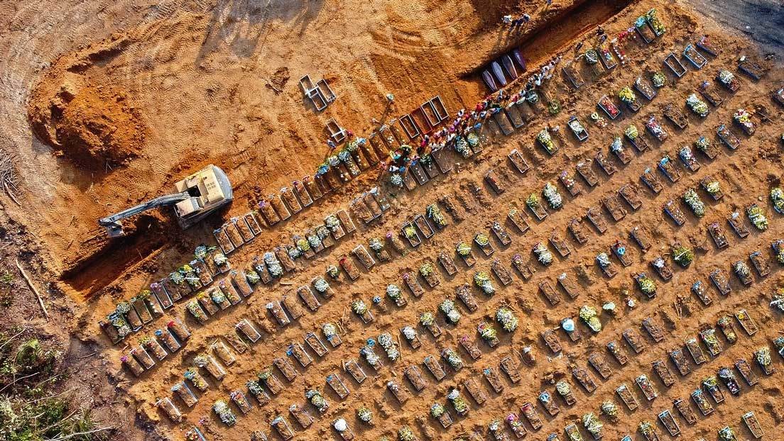 Los cementerios también han colapsado, incapaces de acoger a los 288 fallecidos que reflejaban las últimas cifras.El alcalde de la ciudad, Arthur Virgílio Neto, declaró estar presenciando «escenas de terror». Ante la incapacidad de enterrar a las personas fallecidas, los cadáveres fueron acumulados en camiones frigoríficos que los trasladaron hasta las fosas comunes que se acaban de abrir, como medida de emergencia, en el cementerio Nossa Senhora Aparecida, el más grande de Manaos. Cuando se vio de nuevo saturado, el cementerio comenzó a cavar fosas más profundas para que permitan sepulturas por niveles en una misma fosa, lo que dejó perplejos a algunos familiares de los fallecidos que relataron las escenas al diario Folha de São Paulo.