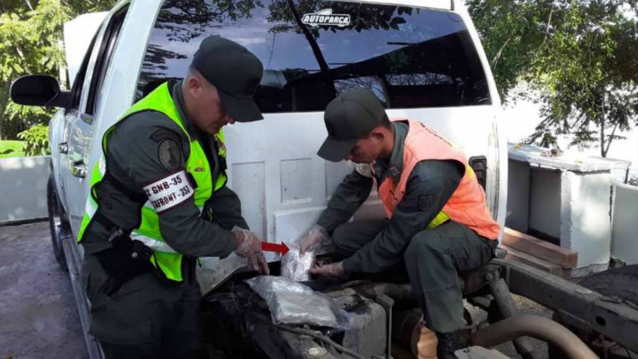 Durante el procedimiento, los efectivos hallaron 25 envoltorios de cocaína de forma rectangular ocultos en el tanque de gasolina del vehículo en el que viajaba, los cuales arrojaron un peso total de 24 kilogramos con 750 gramos de la droga.
