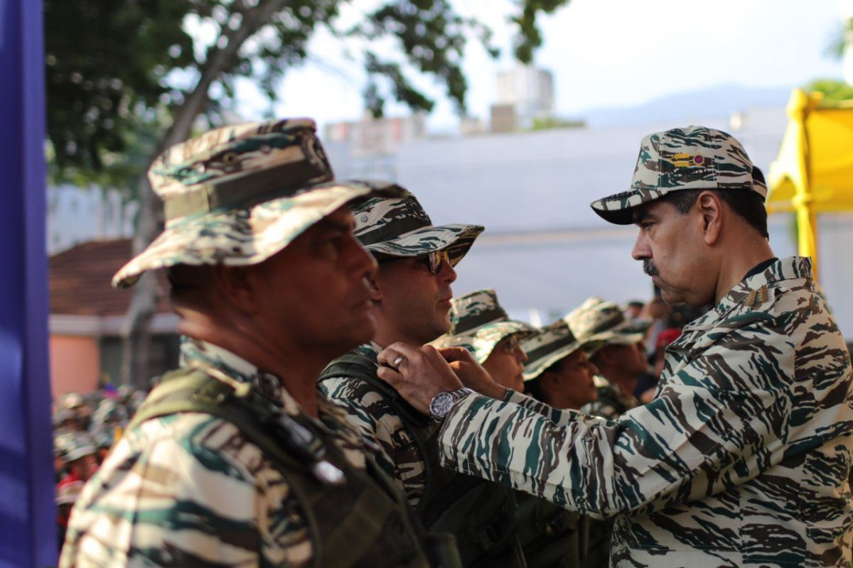 Maduro impuso la «Medalla Cruz de la Milicia en su Primera Clase» a oficiales militares y policiales destacados en la Operación Relámpago del Catatumbo y recibió un regalo de parte de dos milicianas en conmemoración a la unión cívico militar.