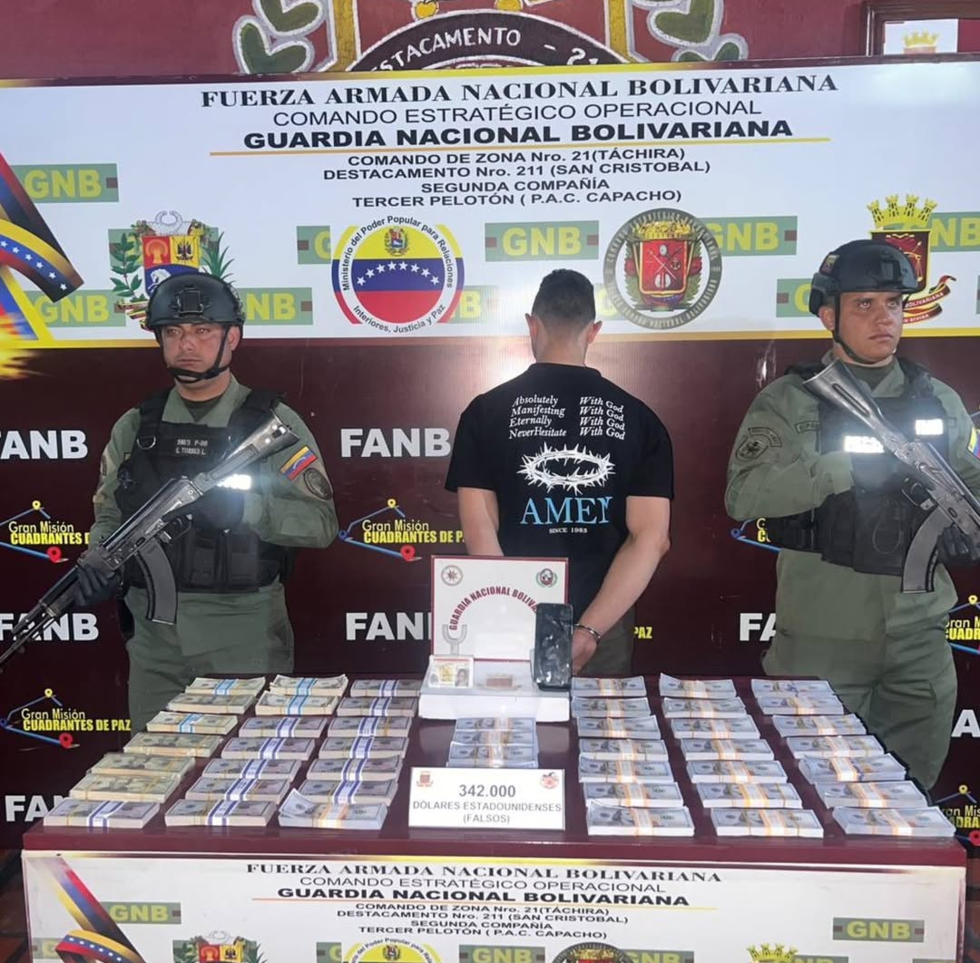 Un hombre fue detenido por efectivos pertenecientes a la Fuerza Armada Nacional Bolivariana (FANB), en el PAC Capacho en Táchira, luego de que le encontraran una alta suma de dólares americanos falsos.