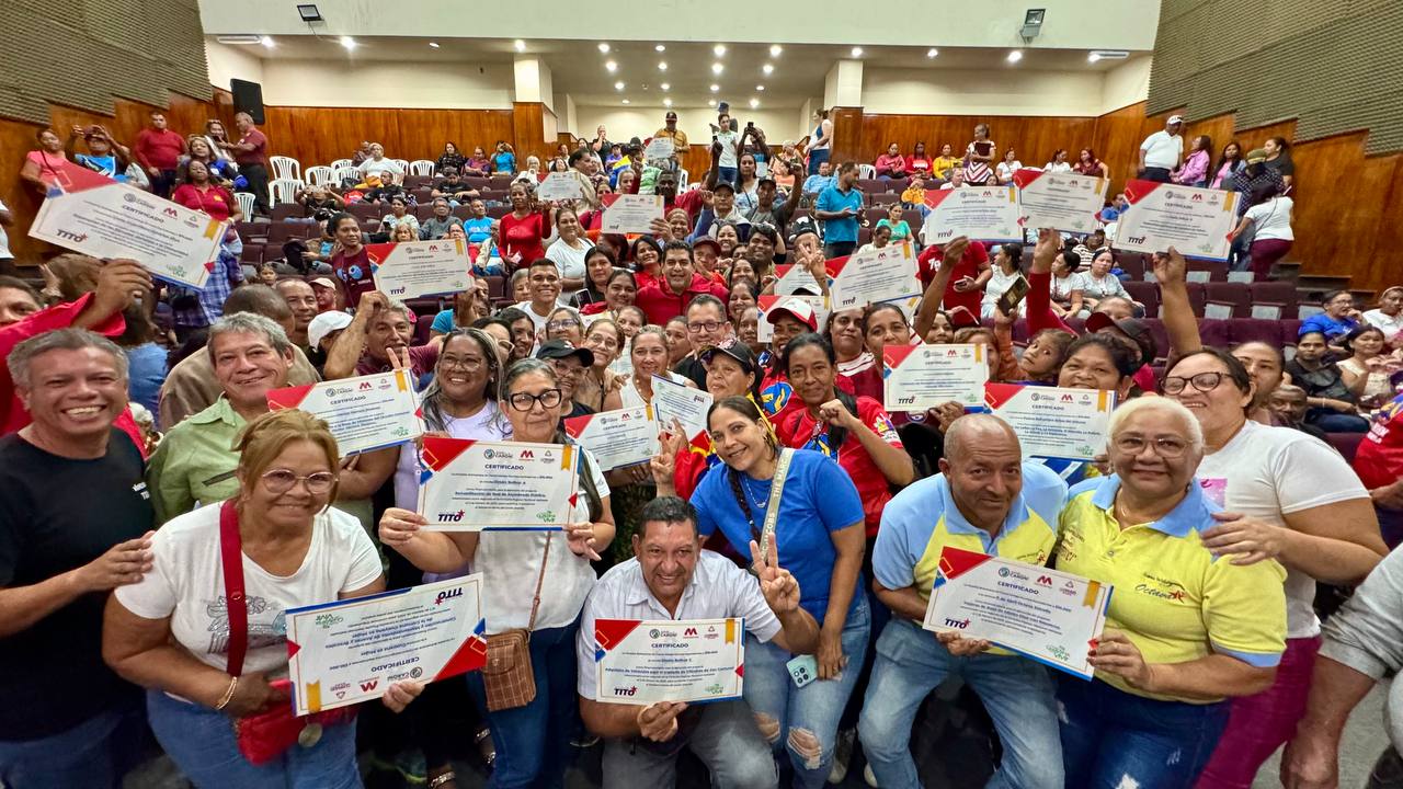 En compañía de autoridades del Ministerio de Comunas, el alcalde del municipio Caroní, Tito Oviedo, entregó este jueves certificados de financiamientos para cuarenta y dos obras de circuitos comunales y comunas.