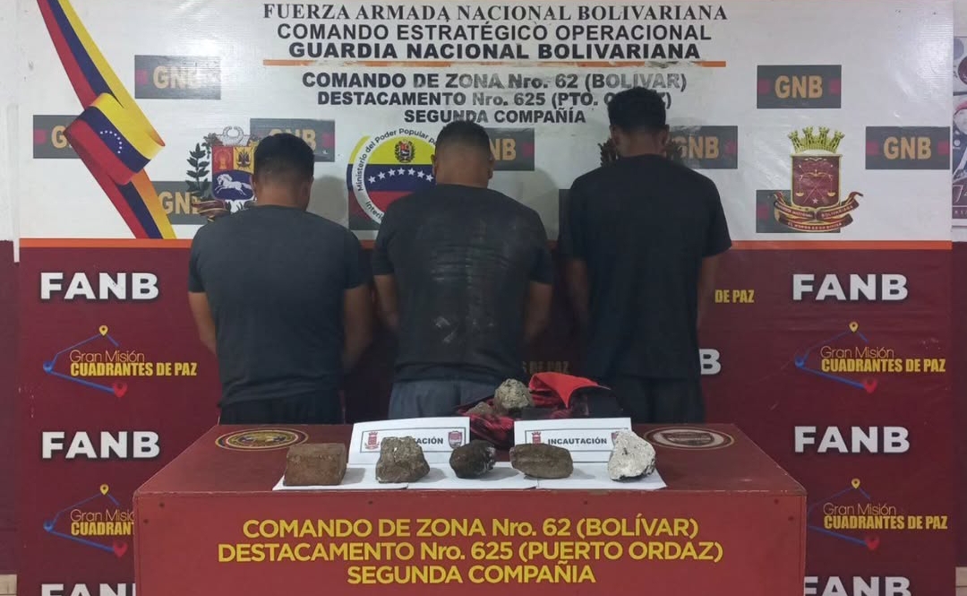 Los miembros de dicho grupo fueron aprehendidos en flagrancia en la troncal N° 19, sentido Puerto Ordaz – Ciudad Bolívar, durante el procedimiento les incautaron a los detenidos un morral con varias piedras que serían utilizadas para interceptar vehículos en la troncal.