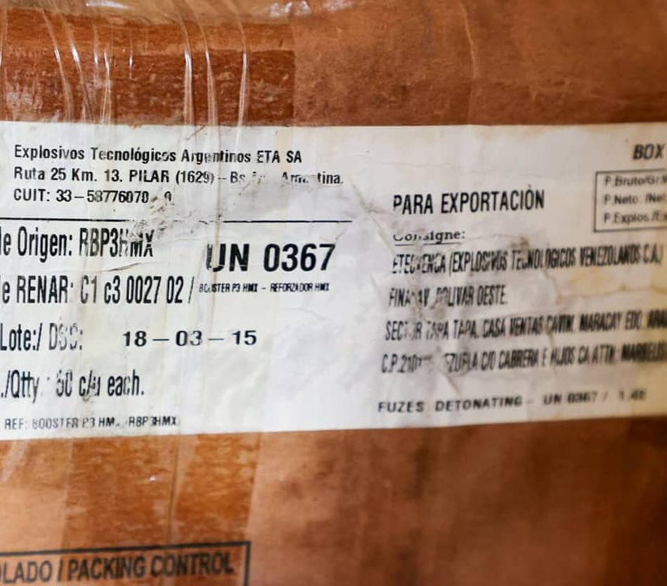 Desde la Zona Industrial, el también ministro para Relaciones Interiores, Justicia y Paz mostró el material ubicado en cajas dentro de uno de los galpones, incluyendo explosivos de distintos tipos, detonadores eléctricos, entre otros.