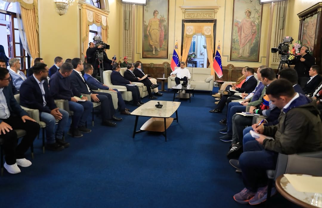 Desde el salón Simón Bolívar del Palacio de Miraflores, el presidente de Venezuela, Nicolás Maduro, sostiene una reunión de trabajo con los 50 alcaldes y alcaldesas de la oposición venezolana electos el pasado 27 de julio, para el período 2025 -2029.