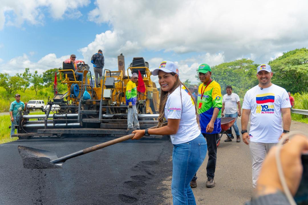 Unas 37 mil 800 toneladas de asfalto ha colocado el gobierno de Yulisbeth García en el estado; gestión que “Por Amor a Bolívar” avanza con transformación y producción, gracias al apoyo del presidente Nicolás Maduro y de la madrina Delcy Rodríguez, consolidando vías para el desarrollo de este territorio potencia.