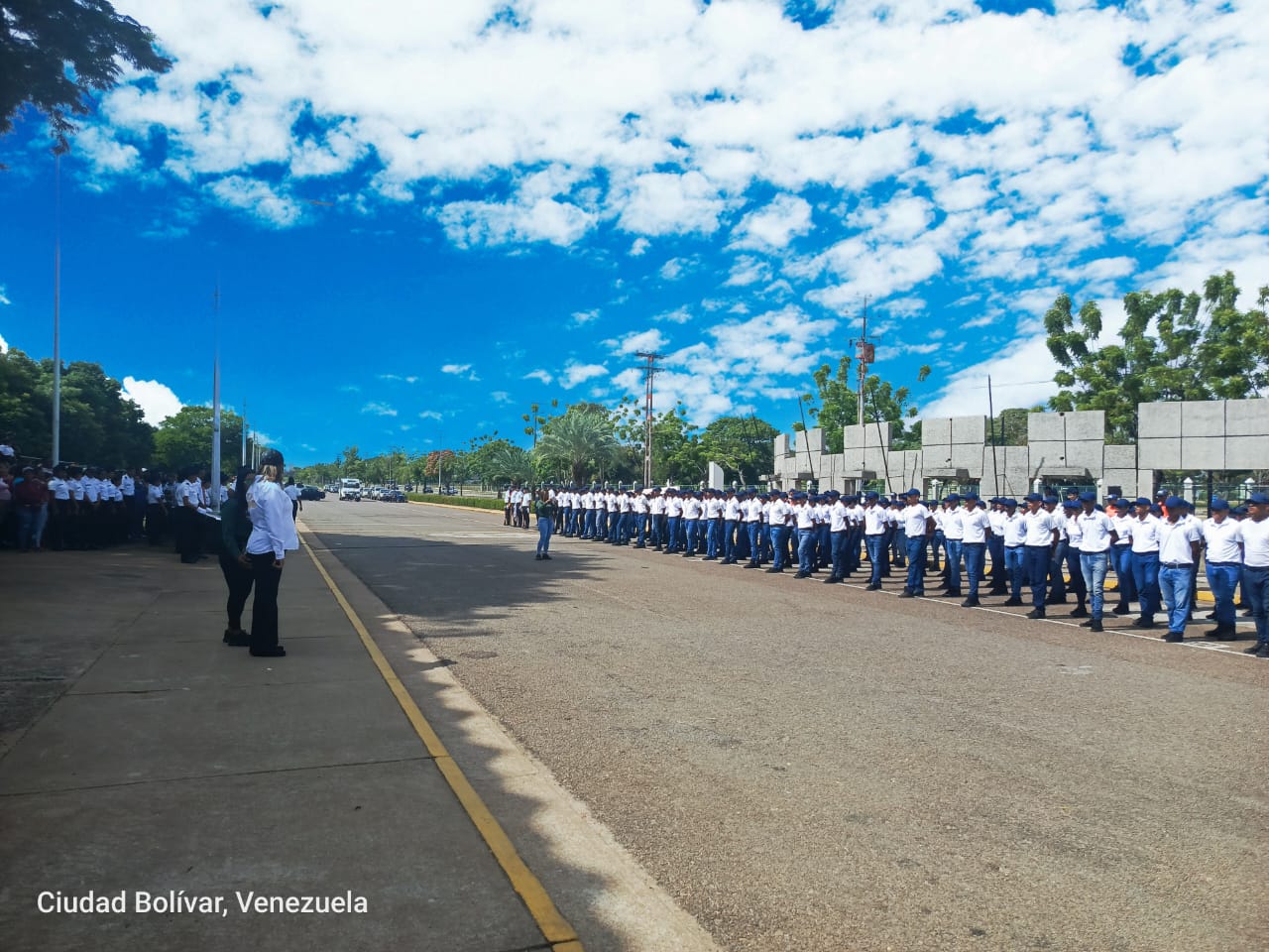 Desde el paseo Libertador de Ciudad Bolívar se llevó a cabo este 26 de septiembre el acto de bienvenida y ósculo a la bandera nacional por parte de los 530 nuevos estudiantes de la Universidad Nacional Experimental de la Seguridad (UNES) Núcleo Bolívar para el período académico II-2025.