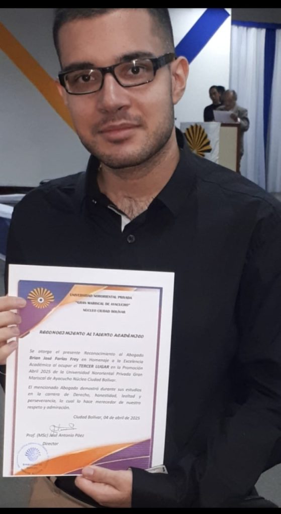 Prueba de ello es Brian Farías, de 24 años edad, bolivarense, hijo único de la unión entre Yajaira Frey y José Luis Farías, quien fue diagnosticado con trastorno del espectro autista y quien convirtió su condición en una fortaleza para lograr sus metas, entre ellas, las de convertirse en el primer abogado con autismo graduado en la Ugma Ciudad Bolívar.