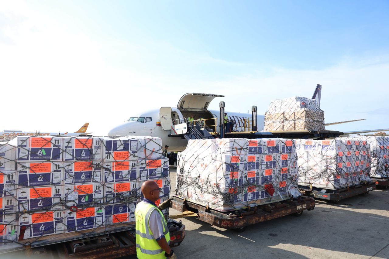 Un nuevo cargamento de 1 millón 150 mil dosis de vacunas para la protección del pueblo venezolano en materia de salud, arribó este domingo al Aeropuerto Internacional Simón Bolívar de Maiquetía, estado La Guaira. El nuevo cargamento incluye 900 mil dosis de vacunas, entre ellas SRP (sarampión, rubéola y parotiditis) y pentavalente.