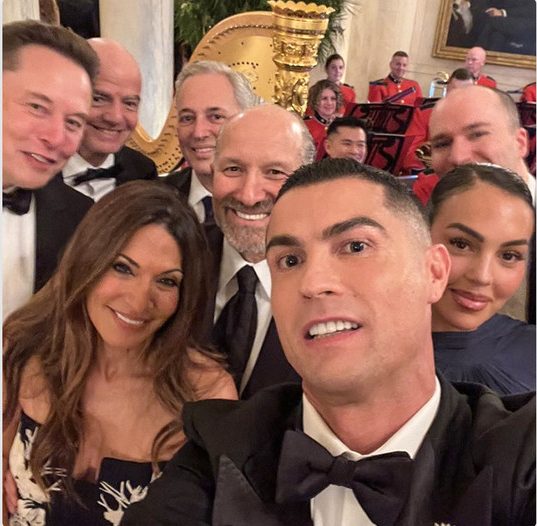 Pero el selfi viral captó juntos al astro portugués y su pareja, Georgina Rodríguez; al magnate tecnológico Elon Musk; al presidente de la FIFA, Gianni Infantino; al secretario de Comercio de Estados Unidos, Howard Lutnick, y a su pareja, Allison; así como al propio David Sacks y al presidente de OpenAI, Greg Brockman.