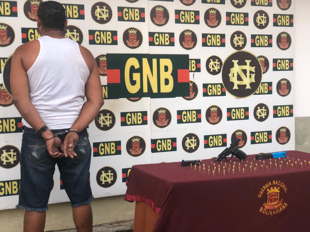 El General Rodríguez Cepeda refirió que el procedimiento fue realizado por efectivos militares adscritos al Destacamento 624, quienes capturaron al ciudadano Domingo Josué de Olivera Gámez (37), con un arma de fuego marca bersa, calibre 9mm, sériales alterados, con 02 cargadores y 57 cartuchos 9mm sin percutir.