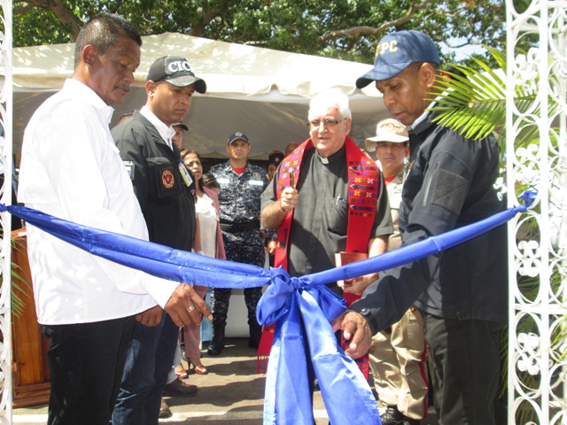 Posterior mente se procedió al corte de la cinta acompañados de los ilustres visitantes y del padre Manuel Lozano párroco de la diócesis nuestra señora de la luz, quien además hizo la oración inaugural y la bendición a esta infraestructura que servirá de sede a la Policía Científica, al mismo tiempo se procedió a develar la placa en la cual se describe este acto histórico del gobierno revolucionario.