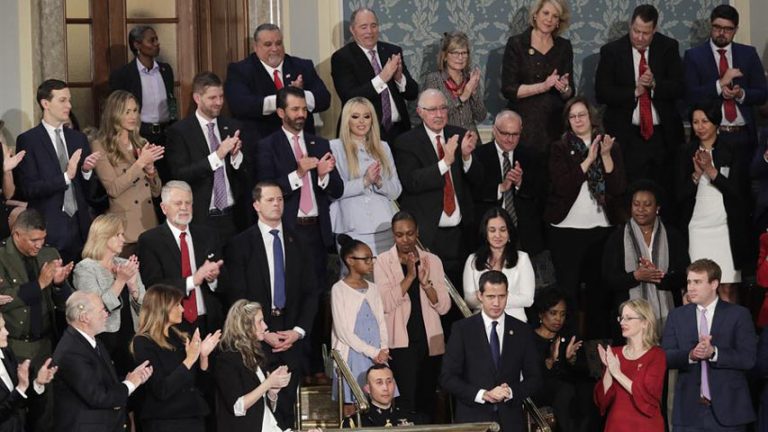El jefe de Estado reiteró su respaldo a Juan Guaidó, quien se encontraba entre los invitados al acto que se llevó a cabo en el congreso estadounidense.
