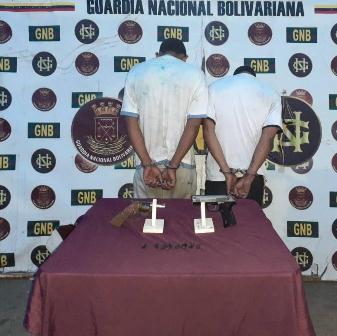 El comandante de la Zona N°62 G/B Adolfo Rodriguez Cepeda identificó a los detenidos como Yeifran Mesones Garcia (28) y Abner Rodríguez Cordero (26) a quienes efectivos militares del Punto de Atención al Ciudadano «Ferrys y Chalanas» del Destacamento N° 625 le incautaron un arma de fuego de fabricación no industrializada, un arma neumática tipo flover y ocho envoltorios de presunta marihuana.