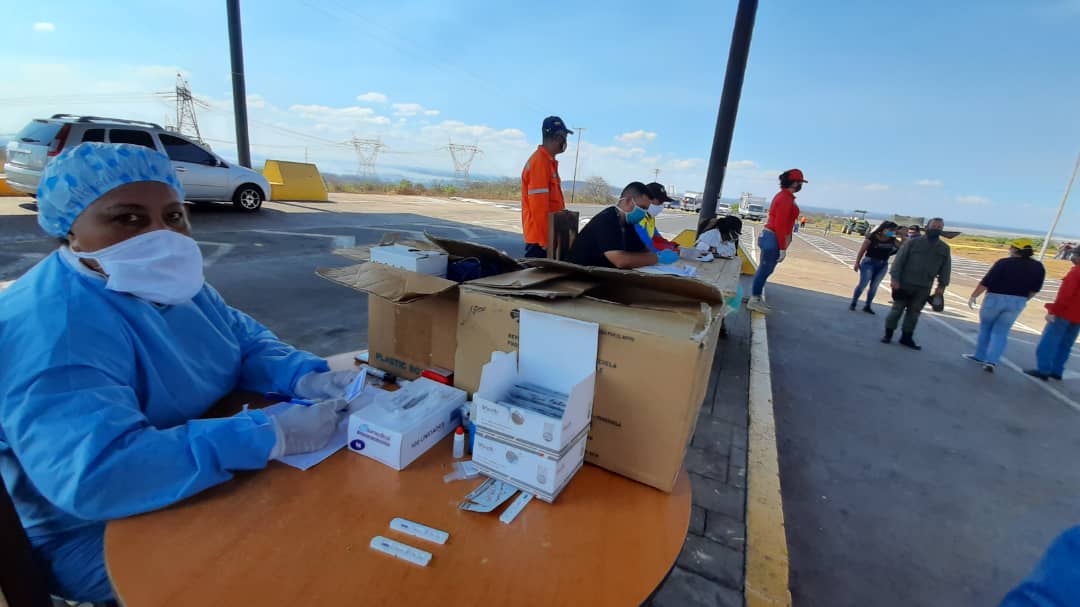 Siguiendo las instrucciones del gobernador, cuentan con un equipo integrado de especialistas médico de la Fundación Misión Barrio Adentro, para hacer pruebas rápidas de despistaje del Covid19 a las personas que ingresan de otros estados adyacentes de Bolívar.