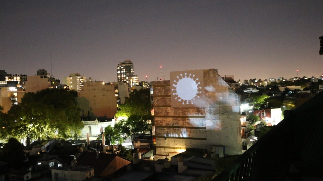 El proyecto ─presentado a concurso de la Organización de las Naciones Unidas (ONU) para frenar la propagación del virus─, combina recursos ilustrativos para articular una comunicación urbana en barrios de la ciudad. Para ello, en el contexto de encierro, utilizan diferentes proyectores con imágenes que se despliegan sobre los edificios en la noche. En esas piezas, el colectivo invita a los vecinos a participar de algunas trivias y juegos sobre el covid-19 desde la comodidad de sus balcones o ventanas.
