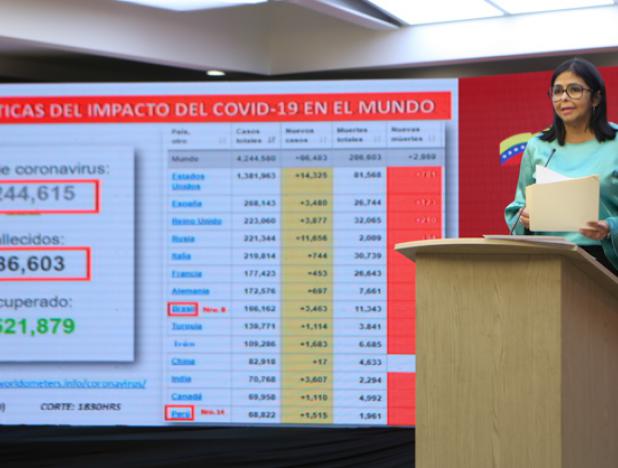 La Vicepresidenta detalló que los nuevos casos de coronavirus se ubican geográficamente en los estados Aragua (3), Nueva Esparta (1), Falcón (1), Miranda (1) y La Guaira (2).