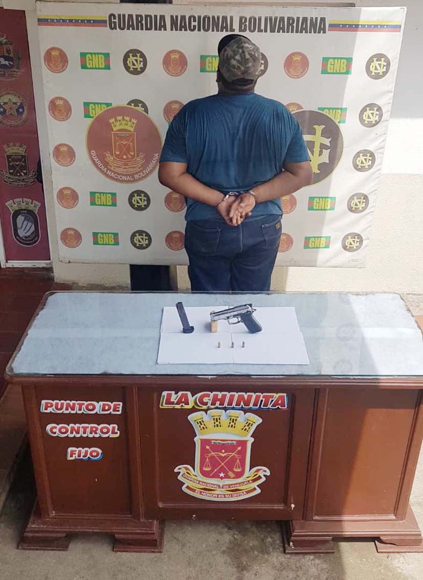 El G/B Rodríguez Cepeda resaltó que cuando se realizaban labores de chequeo y revisión en el Punto de Atención al Ciudadano “La Chinita”  incautaron 01 arma de fuego, tipo Pistola, marca Taurus, modelo PT-58H, calibre 380 con 03 cartuchos sin percutir.