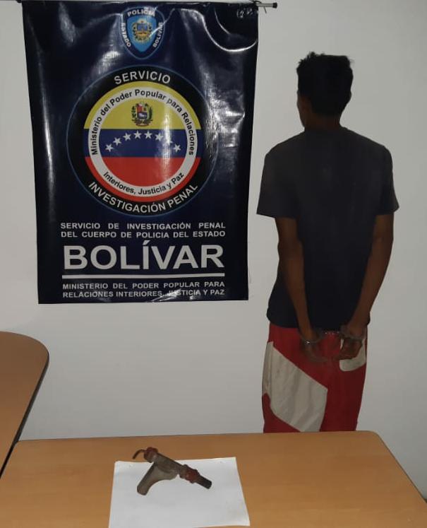 Jeorge Tirzo Beltrán Marcano Ramos de 22 años de edad fue detenido por efectivos del Servicio de Investigación Penal del Cuerpo de Policía del Estado Bolívar, por porte ilícito de arma de fuego, además de tener otros registros policiales abiertos por las cuales esta solicitado ante la justicia.