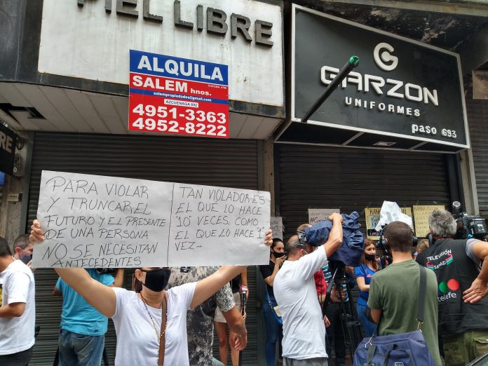 La protesta convocada frente al local Garzón Uniformes, ubicado en Buenos Aires, Argentina, se convirtió en una marcha en la que cientos de personas caminan hacia los Tribunales para exigir justicia por el caso de la venezolana de 18 años de edad que fue víctima de abuso sexual el sábado 23 de enero.