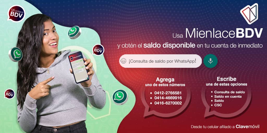 El Banco de Venezuela (BDV) activó la opción de consultar el saldo disponible en cuenta a través de WhatsApp.