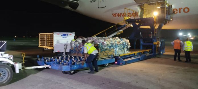 En ese primer cargamento enviaron agua potable, medicinas y alimentos, entre otros elementos.