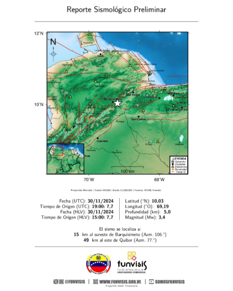 La Fundación Venezolana de Investigaciones Sismológicas (Funvisis) registró dos sismos en Barquisimeto este sábado 30 de noviembre, en menos de ocho horas.