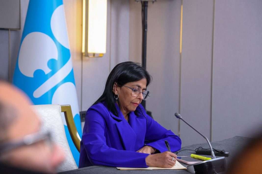 La vicepresidenta Ejecutiva de la República, Delcy Rodríguez, durante la 38ª Reunión Ministerial de la Organización de Países Exportadores de Petróleo (Opep) y no Opep, reafirmó el compromiso histórico de Venezuela, para contribuir al equilibrio energético global en tiempos de desafíos para la economía mundial.