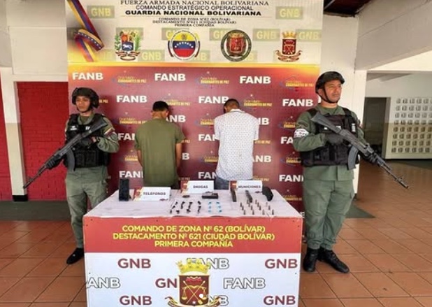En el barrio Colinas de Los Próceres, municipio Angostura del Orinoco, funcionarios de la Guardia Nacional Bolivariana (GNB) detuvieron a dos integrantes de la banda delictiva conocida como “el Negro Fabrio”.