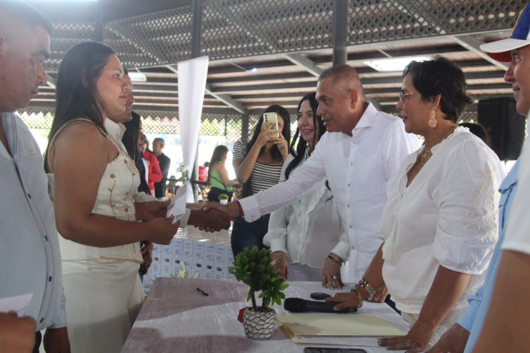 El gobernador del estado Bolívar, Ángel Marcano, la primera combatiente, Yajaira Arocha de Marcano, y el alcalde de Angostura del Orinoco, Sergio Hernández, presenciaron el evento como testigos del matrimonio colectivo.