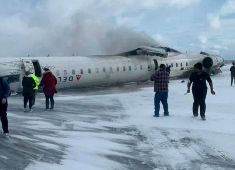 Un avión operado por Delta Airlines volcó este lunes en el Aeropuerto Internacional Pearson de Toronto, Canadá, dejando a al menos 15 personas heridas.