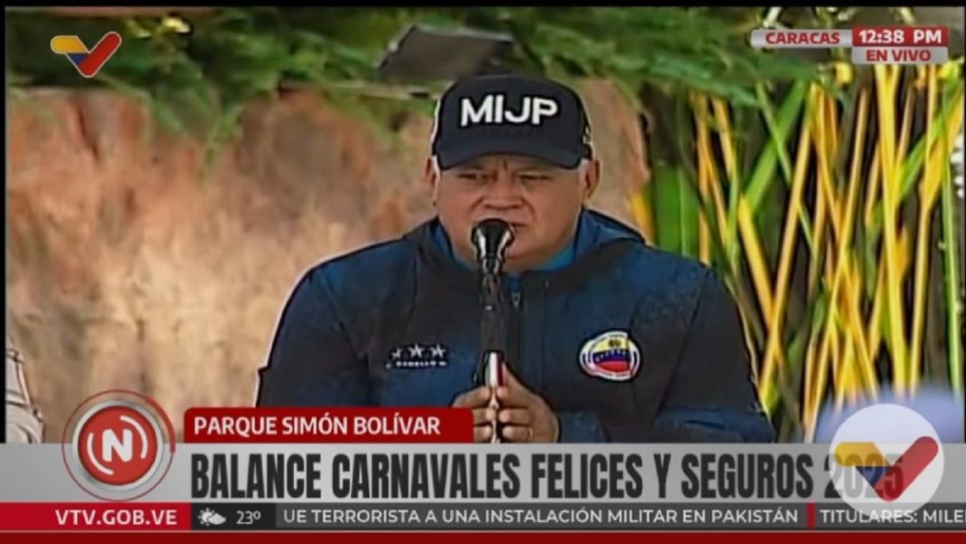 El vicepresidente sectorial para la Seguridad Ciudadana, Diosdado Cabello, acompañado de la vicepresidenta Delcy Rodríguez, manifestó este miércoles que concluyó con éxito, el operativo de seguridad «Carnavales Felices y Seguros 2025».