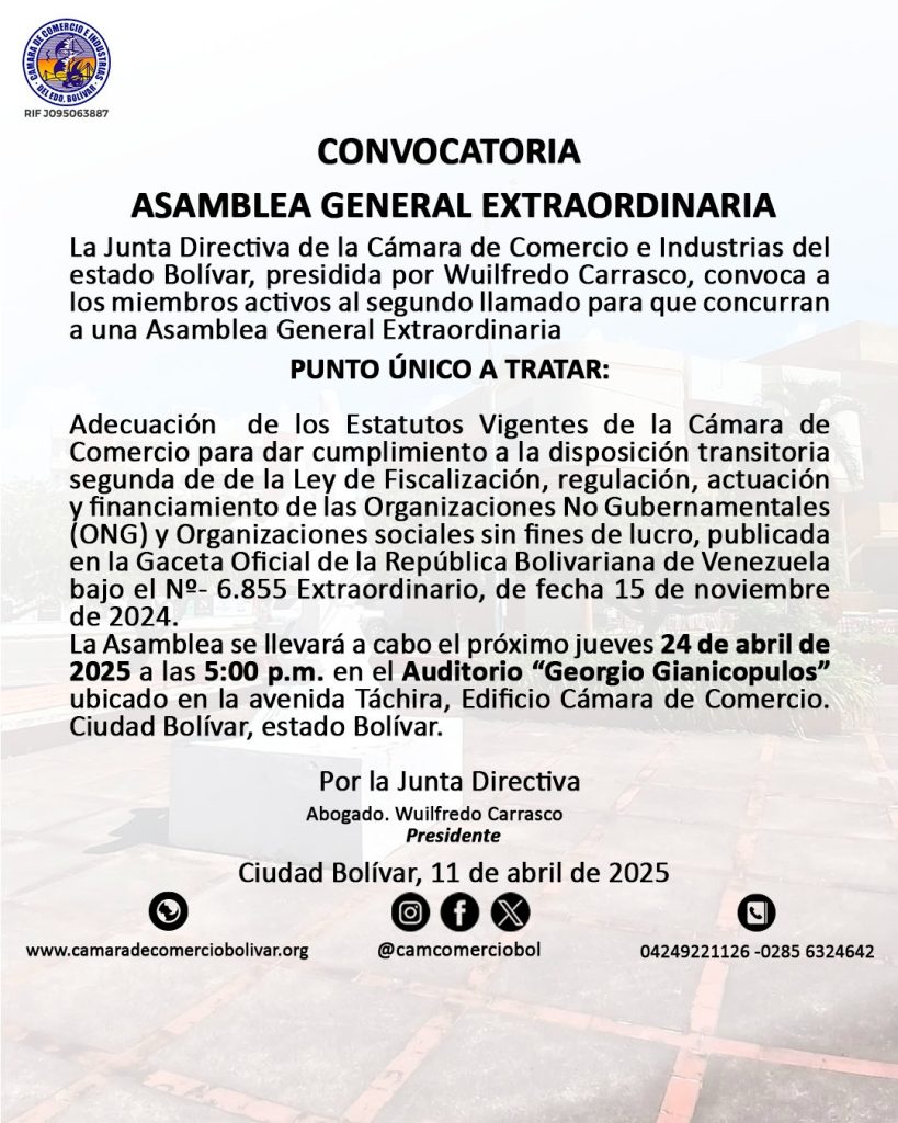 InicioAvisos Avisos Convocatoria | Cámara de Comercio del estado Bolívar 11 de abril de 2025 259 Divorcio por desafecto 4-12-25 Etiqueta BolívarCiudad Bolívar FacebookTwitterInstagramTiktokTelegramWhatsApp Artículo anteriorJackson Chourio destaca entre mejores venezolanos de la MLBArtículo siguienteCorpoelec denuncia ataque al Sistema Eléctrico Roelsi GudiñoPeriodista, Productora Audiovisual, Fotográfa, Marketing Digital, Creador Digital FacebookTwitterInstagramTiktokTelegramWhatsApp - PUBLICIDAD- Canal de Telegram