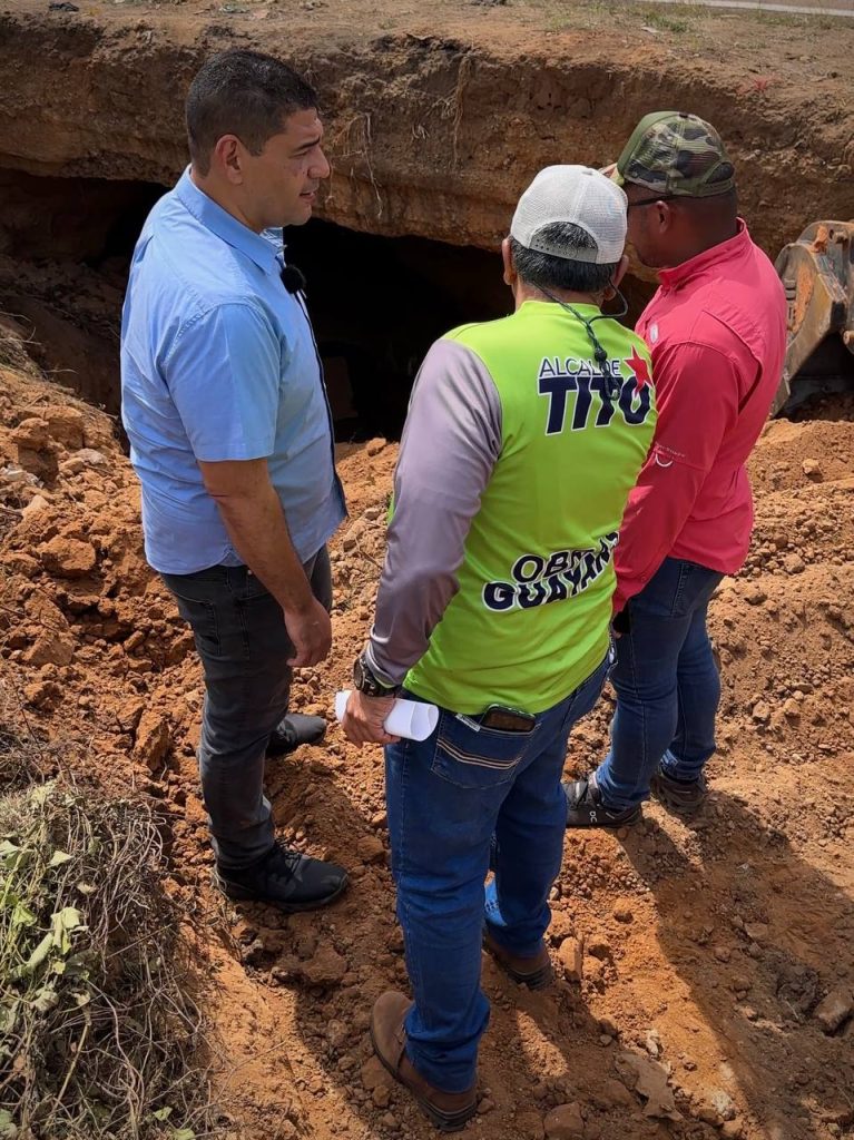 El alcalde Tito Oviedo estuvo en el lugar acompañado de su equipo de ingenieros y personal operario de la Corporación de Servicios y Obras Guayana para acometer las labores que revierta la socavación.