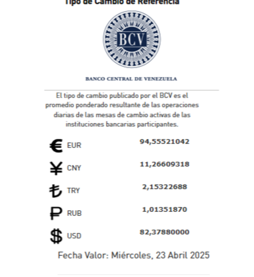 El Banco Central de Venezuela (BCV), fijó la tasa del dólar oficial que estará vigente para este miércoles 23 de abril. La tendencia de la moneda estadounidense sigue con tendencia al alza.