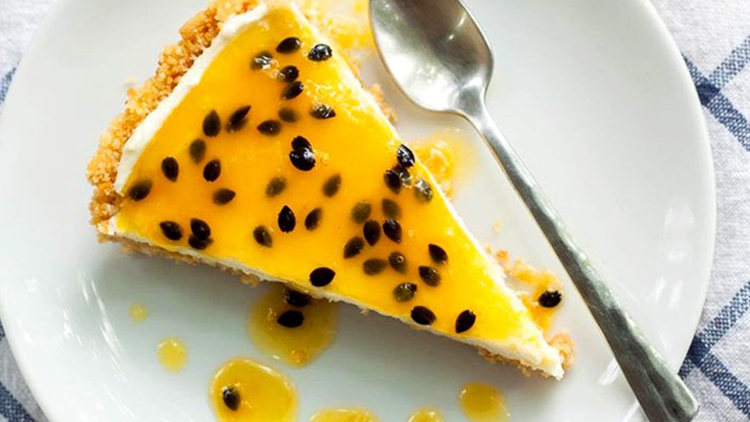 - Para la cobertura, utiliza la pulpa de la parchita que reservaste y separa dos cucharadas (nuevamente, cuela para descartar las semillas). De esto obtendrás un jugo.