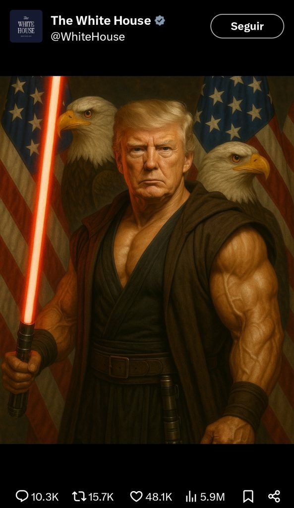 La Casa Blanca publicó este domingo en sus redes sociales una foto del presidente Donald Trump al estilo de Star Wars generada por IA.