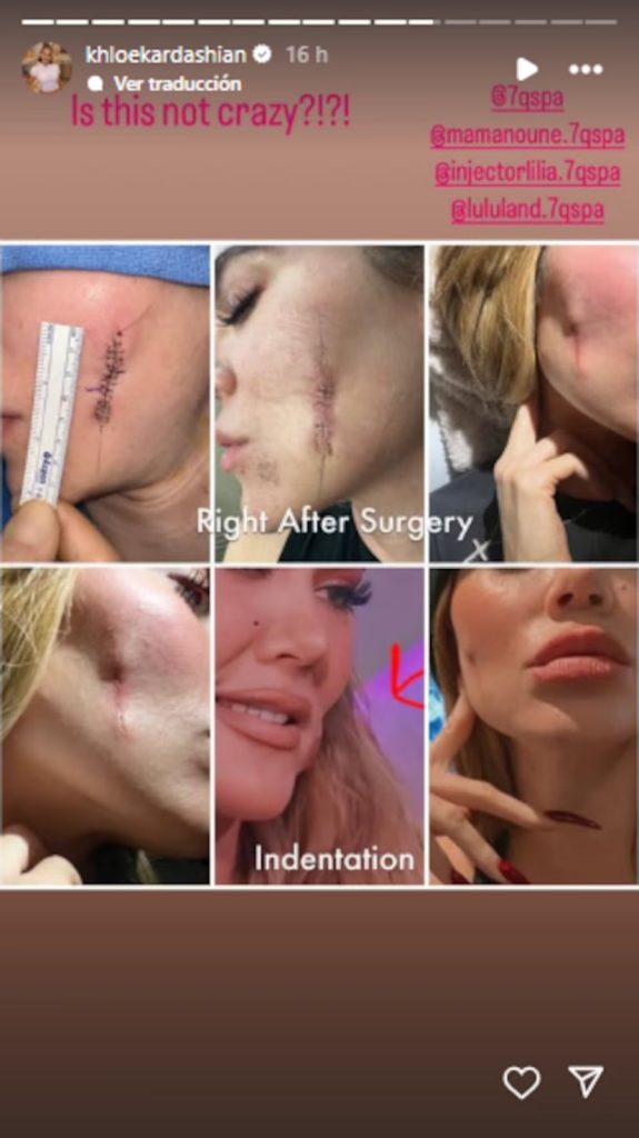 Khloé Kardashian compartió recientemente en sus historias de Instagram imágenes impactantes de los puntos de sutura que le quedaron tras la extracción de un tumor en su mejilla. Según informó la estrella de reality, el procedimiento dejó una hendidura visible en su rostro, la cual fue tratada meses después con rellenos faciales para mejorar su apariencia.