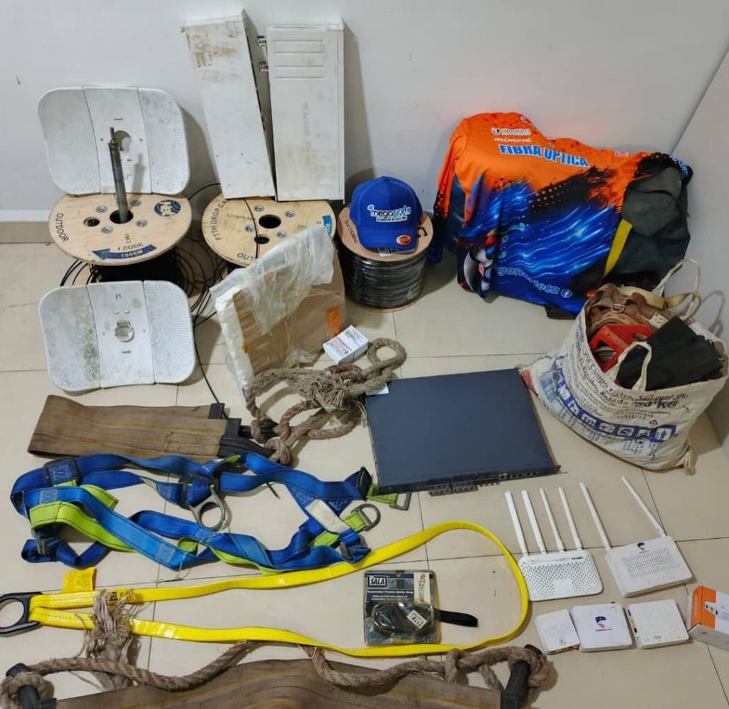 Tras ser detenidos, se les ubicaron diversos equipos para la instalación de internet, facturas, cableados, indumentaria alusiva a la empresa de internet para la que trabajaban.