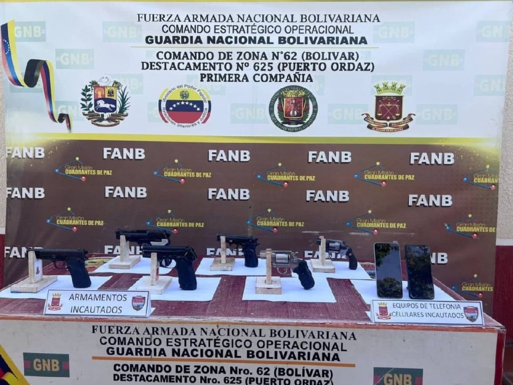 Los individuos detenidos tenían como destino la población de Santa Elena de Uairén, y la incautación de las seis armas de fuego ocultas en un bolso subraya la creciente preocupación por la circulación de armamento no regulado en el país.