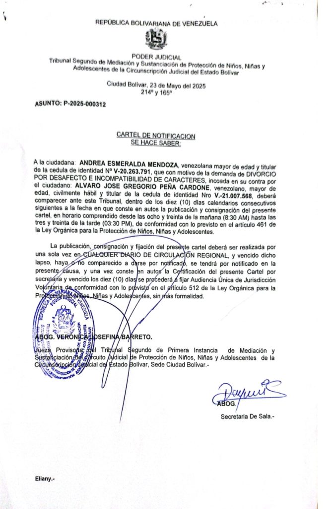 InicioAvisos Avisos Cartel de notificación | Divorcio 28 de mayo de 2025 166 Divorcio por desafecto 4-12-25 Etiqueta BolívarCiudad Bolívar FacebookTwitterInstagramTiktokTelegramWhatsApp Artículo anteriorOnda Tropical N° 2 se aproxima al territorio nacionalArtículo siguienteVenezolano Miguel Navarro fue víctima de xenofobia en la Copa Libertadores Roelsi GudiñoPeriodista, Productora Audiovisual, Fotográfa, Marketing Digital, Creador Digital FacebookTwitterInstagramTiktokTelegramWhatsApp - PUBLICIDAD- Canal de Telegram