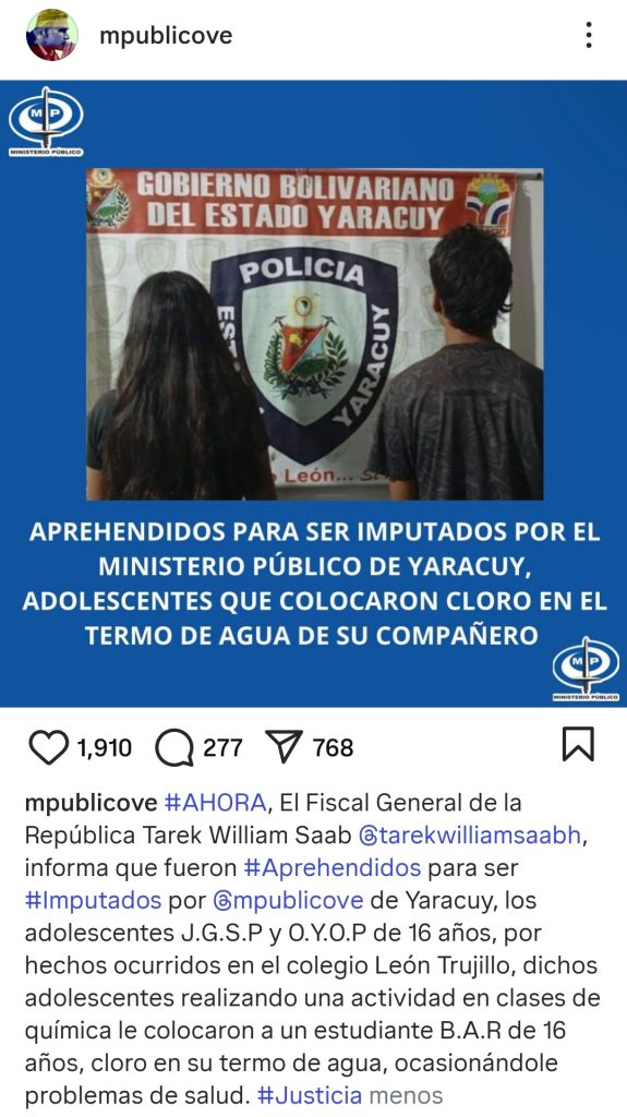 El Fiscal General de la República, Tarek William Saab, informó que ambos menores de edad han sido aprehendidos por los cuerpos policiales del estado.