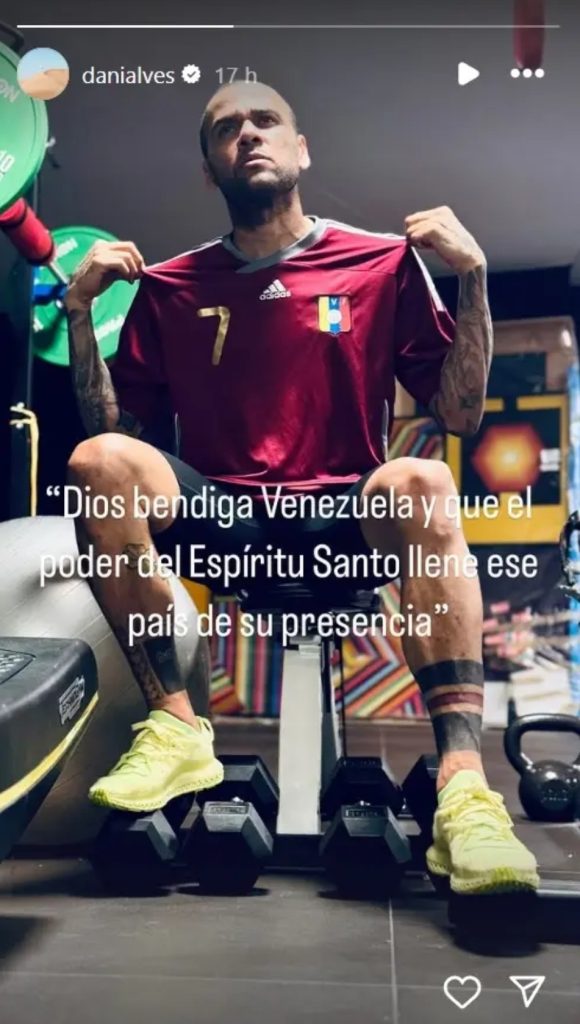 “Dios bendiga a Venezuela y que el Espíritu Santo llene a ese país de su presencia”, expresó Dani Alves.