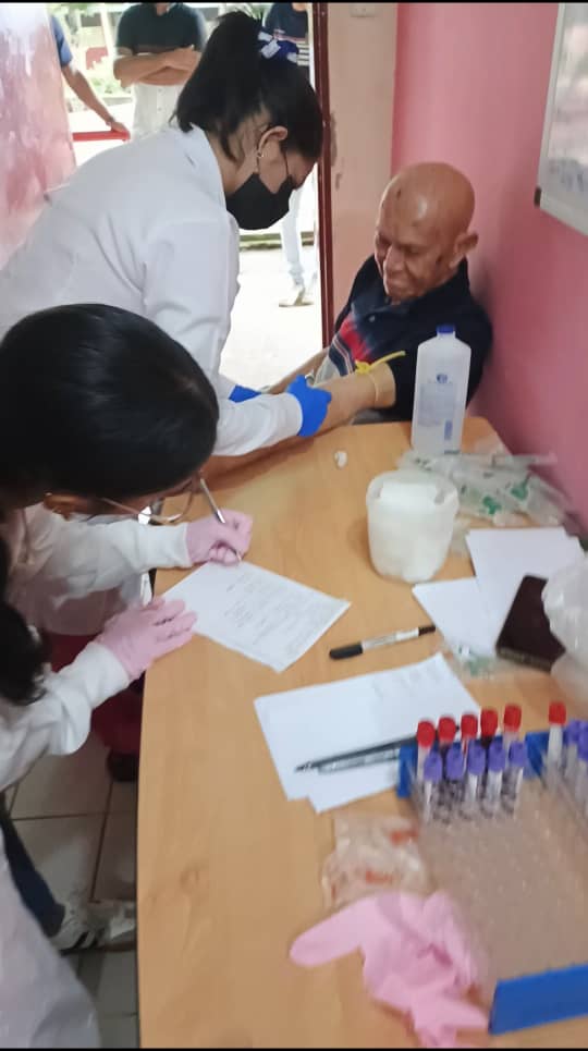La jornada, que comenzó a tempranas horas, e incluyó la extracción de muestras sanguíneas a los residentes del asilo. Según explicó la Dra. Romero, estas muestras permitirán la realización de exámenes de hematología completa, glicemia, creatinina, urea y colesterol total, cruciales para el monitoreo de su salud. Adicionalmente, se les procesó un examen general de orina.