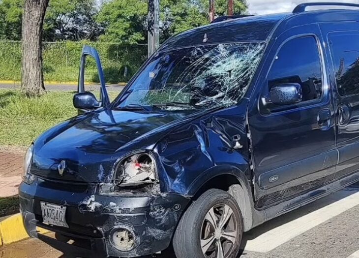 La camioneta involucrada, una Renault de color azul, presentó daños significativos en la carrocería delantera, el vidrio frontal roto y un golpe en la puerta del piloto. Afortunadamente, el conductor de la camioneta resultó ileso.