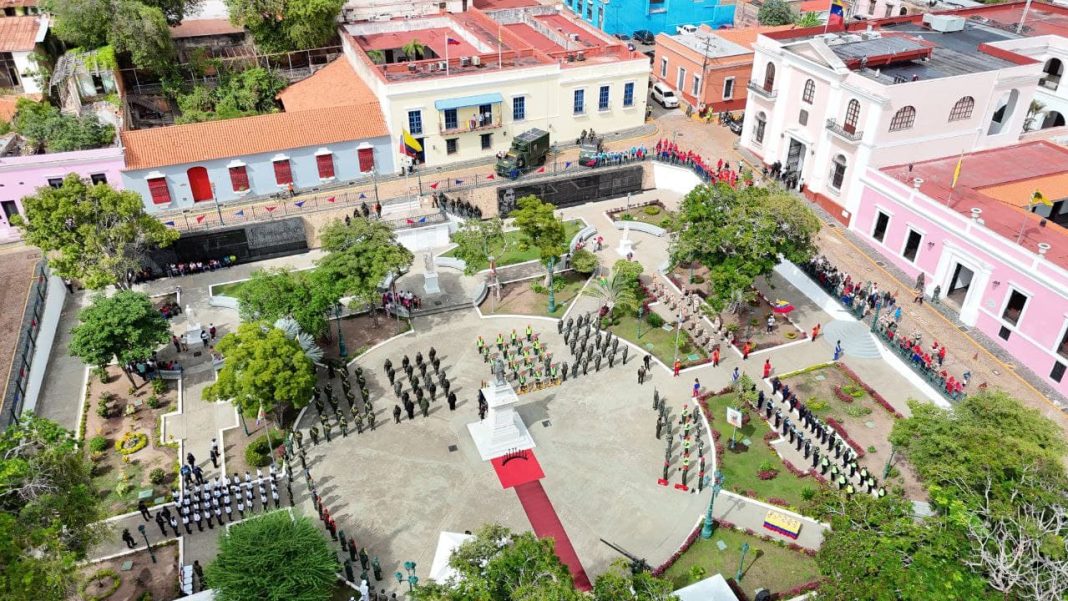 Continuando con un acto solemne y emotivo, en la Plaza Bolívar de Ciudad Bolívar, la cual se convirtió en el epicentro de esta conmemoración, que estuvo marcada por una profunda reflexión sobre la gesta independentista y la reafirmación de la unión popular-militar-policial, como pilar fundamental de la República Bolivariana de Venezuela. Desde este emblemático lugar, con la marcialidad y disciplina que caracterizó la parada militar y la magia de las manifestaciones culturales, autoridades civiles y militares, junto al pueblo, rindieron honores a los héroes y heroínas que hace 204 años sellaron la independencia de Venezuela en los campos de Carabobo.