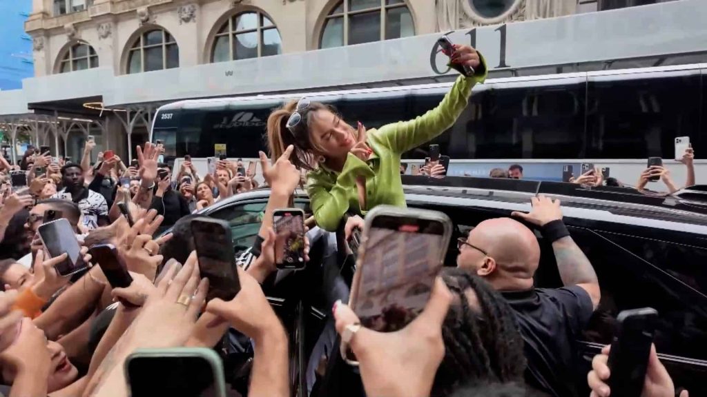 Antes de desaparecer entre el tráfico de la Gran Manzana, Karol G, de 34 años, se subió a la plataforma de su vehículo, permitiendo que la vieran mejor desde una mayor altura y se despidió saludando a los fans, haciéndose “selfis”, formando corazones con sus manos y gritando “¡Les amo!”.
