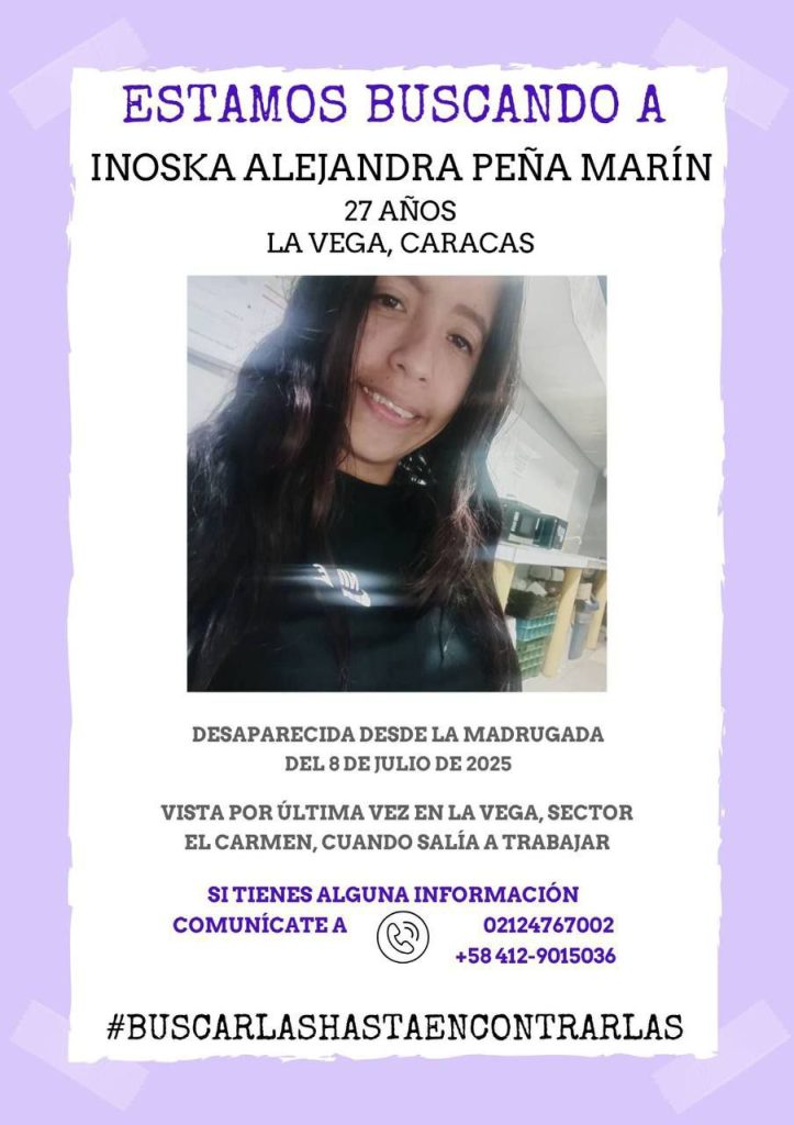 De acuerdo a la versión de sus familiares, Inoska desapareció el pasado 8 de julio, luego de que salió de su trabajo en el área de seguridad del Hospital General «Dr. Miguel Pérez Carreño.
