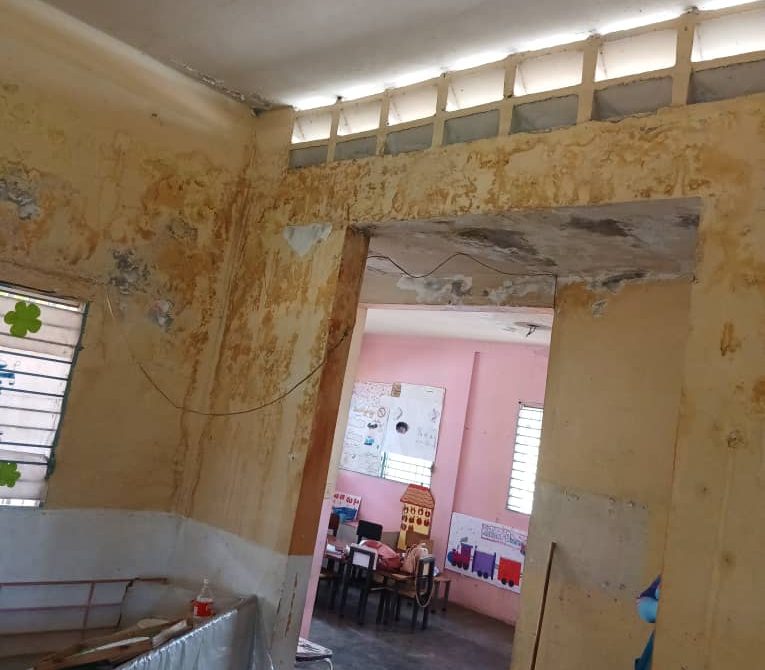 Gracias a un proyecto comunitario previamente aprobado, se logró la reparación del módulo número dos del plantel; sin embargo, aún quedan cuatro módulos pendientes, así como la rehabilitación de aulas, baños, cocina y la dirección, todos actualmente en condiciones críticas.